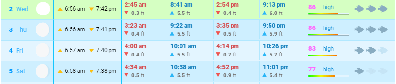 The key with all of these trips is to work with the tides. Here’s what we are looking at for the next couple of days: